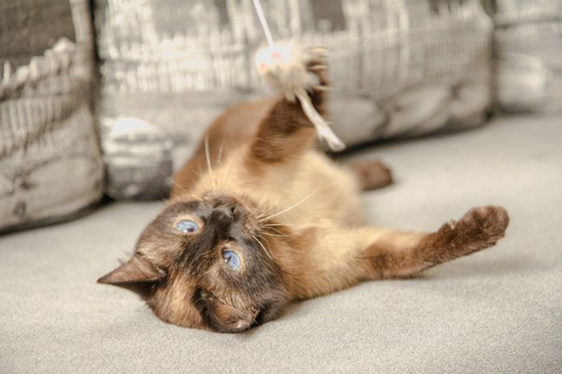 Очень ласковая, преданная, контактная кошечка. Обожает поиграть, побегать с мышкой или мячиком. Хорошо ладит с другими кошками, если те не агрессивны.