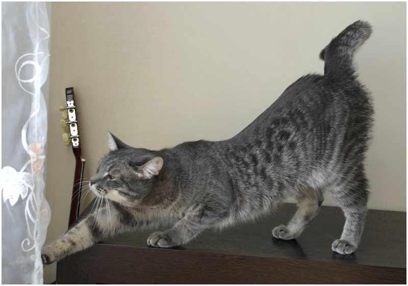 Не хулиганит без меры, не пакостит, но как и любой молодой котик (Сэму 1 годик), любит активные игры!