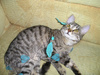 Марфа. Эта кошечка отдается любителям естественной дикой грации. Девочка с независимым характером, всегда начеку и готова в любом фантике разглядеть мишень для охоты. При этом она любит ласку, сидит и мурлычет на ручках, но при любом шорохе убегает проверять свою территорию на наличие непрошенных "гостей". Возраст около 7 мес. Стерилизована. Кушает влажный корм.