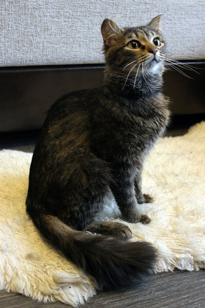 Пронзительный взгляд медовых и чуть с грустинкой глаз, настоящая кошачья брутальность и… нежный, неожиданно беззащитный, розовый нос)) Этот плюшевый котеич с огромным удовольствием помурлычет вам на ушко, ласково обняв вас за шею лапками. Матвей, прожив некоторое время на улице, как никто ценит тепло человеческих рук, которые он будет целовать, да-да, именно целовать. А самым лучшим местом в доме для него станут колени хозяина, на которых он будет нежиться, зажмурив глаза от удовольствия.