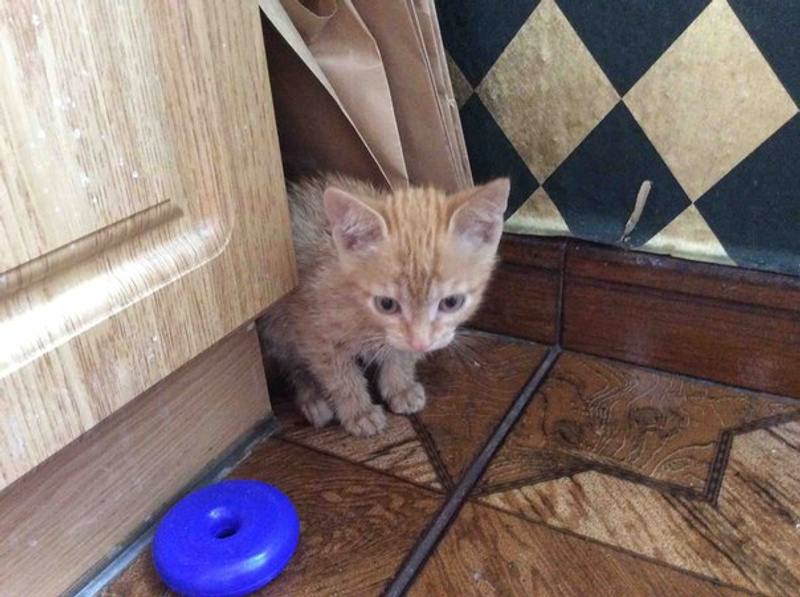 Во дворе Кропоткина 128 найден котёнок. Рыжая девочка, 2-3 месяца. Малышка сидела на колесе машины и жалобно мяукала. Мы её забрали, показали ветеринару, вылечили от вируса. Сейчас киса здорова, очень активная, игручая. Срочно ищем хозяев для этой малютки. У нас две взрослые кошки, у себя оставить не можем!