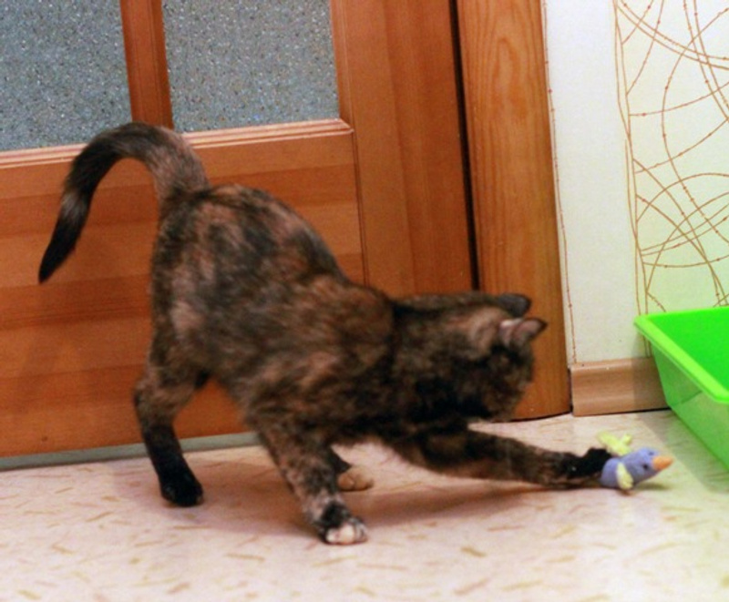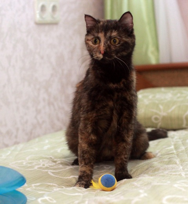 Кошечка молоденькая, игривая, любит поиграть и побегать, как котёнок.