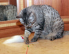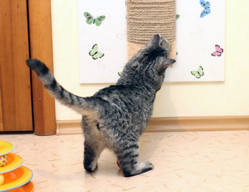 Ходит в два лотка. Умеет пользоваться когтеточкой.