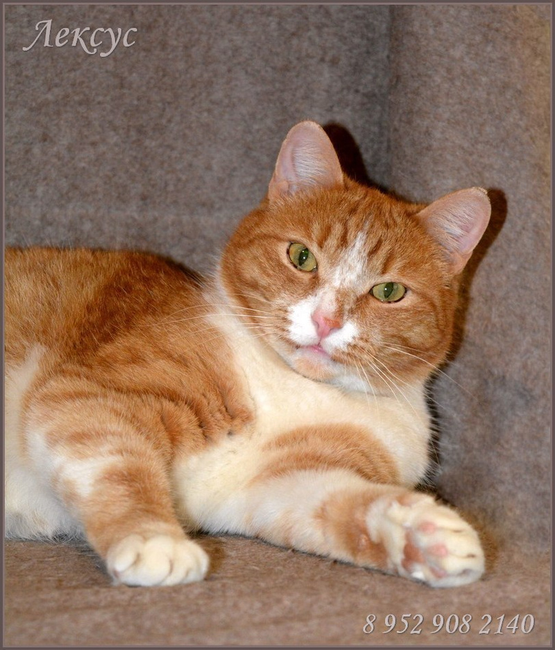 окрас золотойХаризматичный и брутальный кот мечтает обрести свой дом. Лексус в самом рассвете сил (около 5 лет). во вредных привычках не замечен. Очень любит поговорить своим слегка хриповатым голосом, но делает это не навязчиво. Привит и кастрирован.