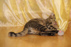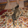 Ему около 7 месяцев, кастрирован, приучен к лотку и когтеточке. Очень домашний, уютных.