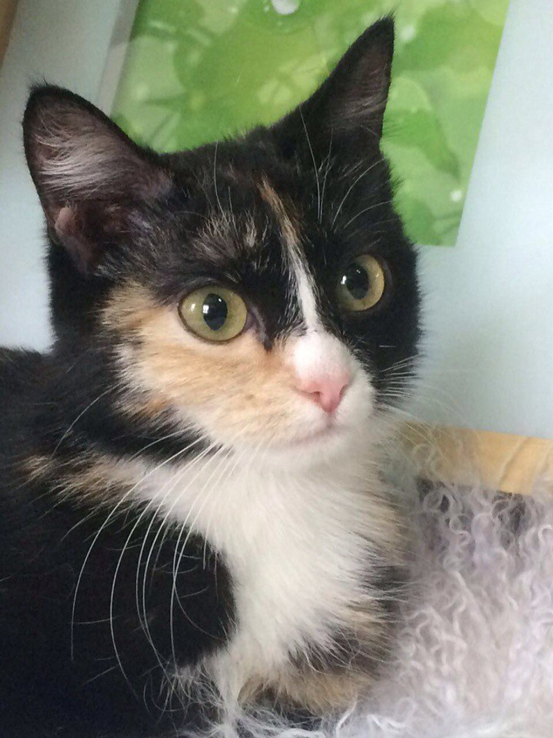 Невероятно красивая глазастая трехцветная барышня с ласковым и нежным характером по отношению к людям. Любит внимание и ласку и всегда отвечает взаимностью. Навязчивостью при этом не отличается. Молоденькая, возраст ок. 6-7 мес., здорова, стерилизована. Есть особенность: кошка, как воспитанная собака, приучена к выгулу. То есть в туалет она ходит на улицу, но в доме не гадит, терпит и дает понять хозяину, что ей нужно "по делам".