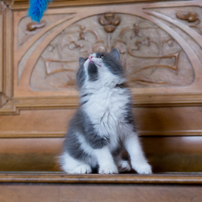 Очень и очень ласковая, с радостью идет на ручки, будет там лежать, мурчать, поигрывать с махалкой. Единственным условным "недостатком" можно считать ее шикарную в будущем шкурку. Пеппа для спокойных по характеру ценителей длинношерстных кошек, которые понимают всю их прелесть.