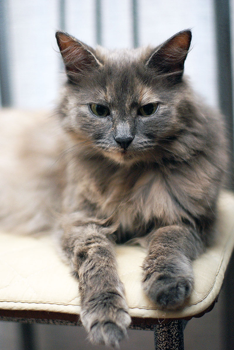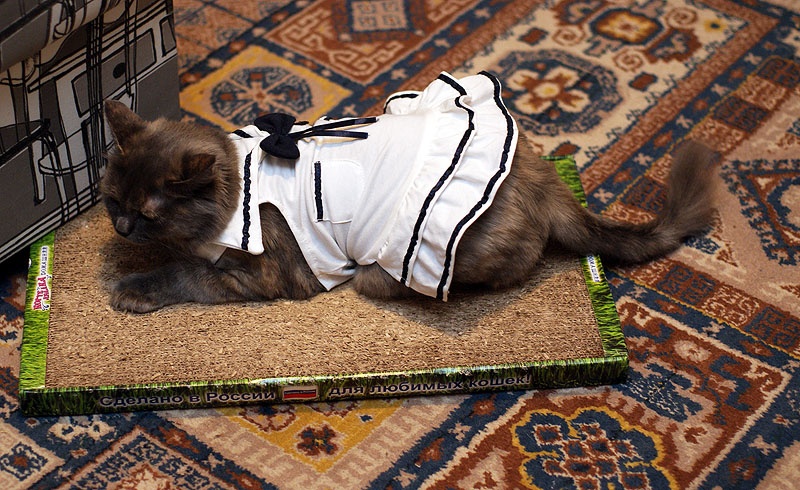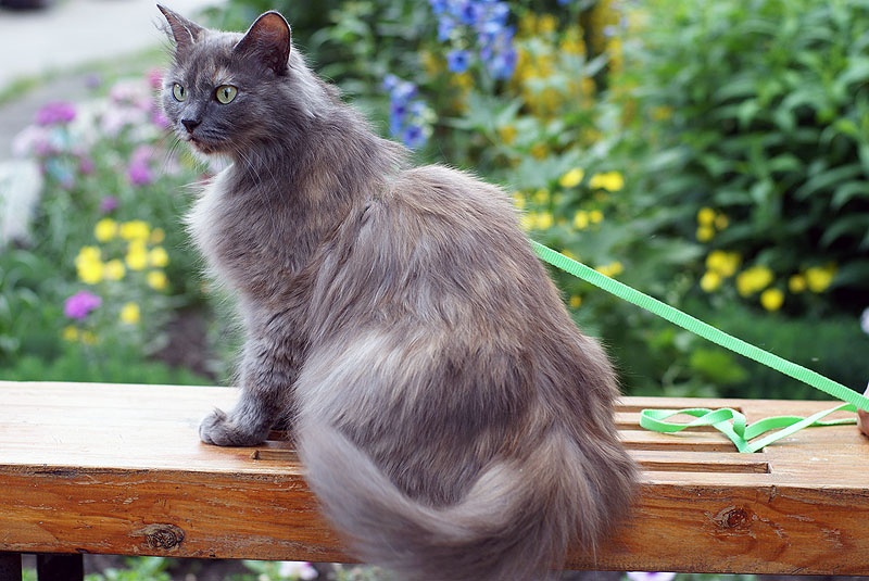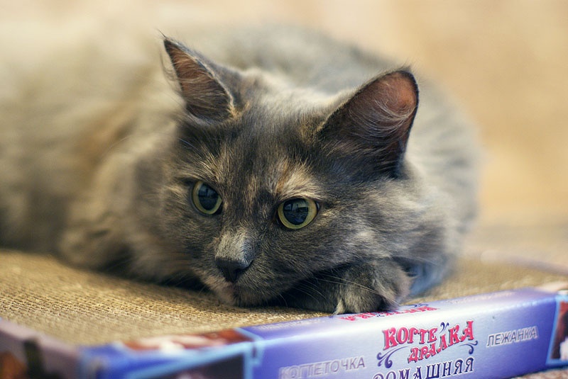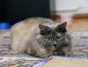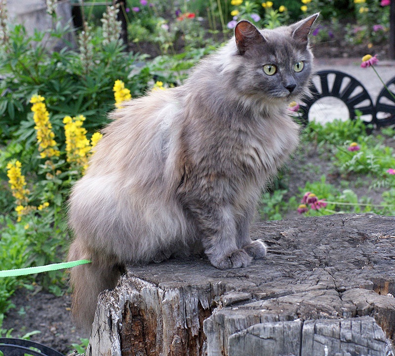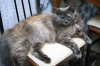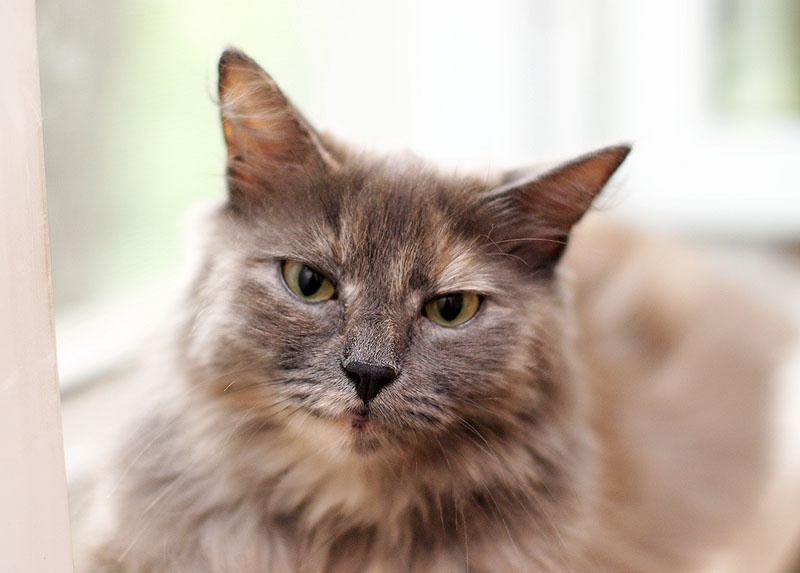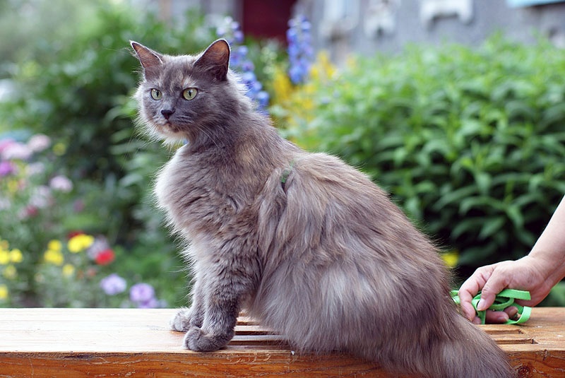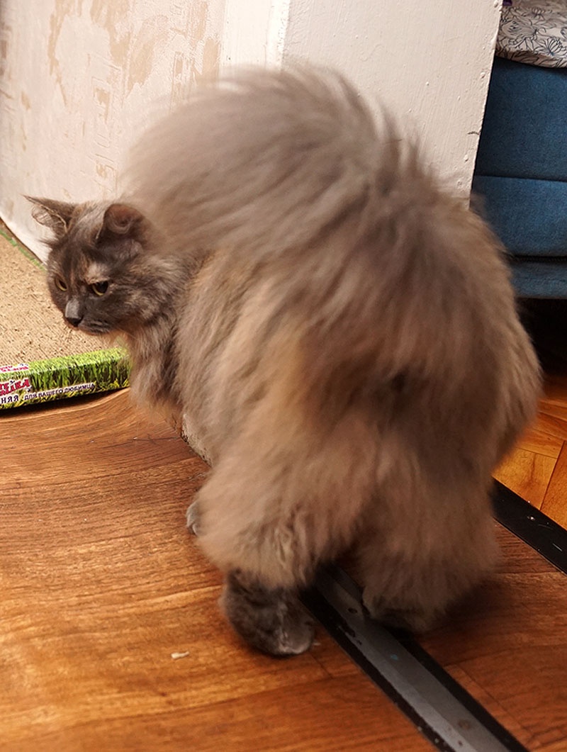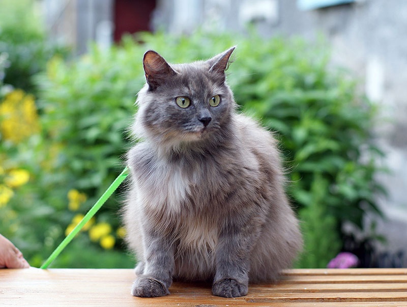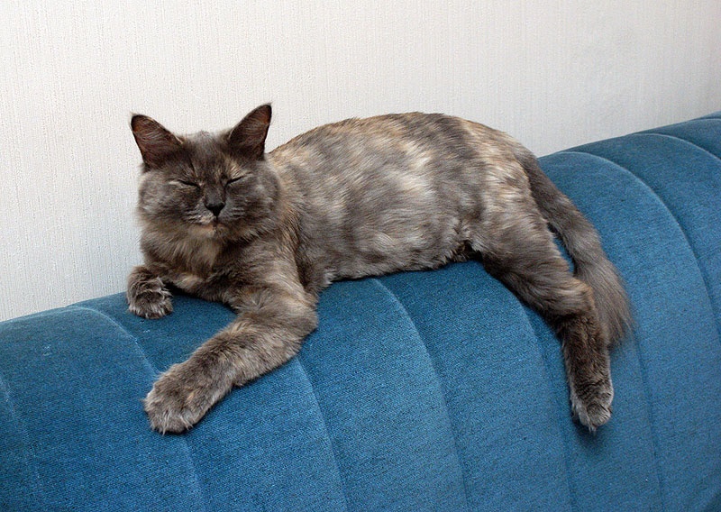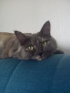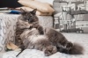 Голубокремовая шубка требует ухода, благо кошка обожает, когда занимаются ее внешностью. Хорошая, очень ласковая девочка.