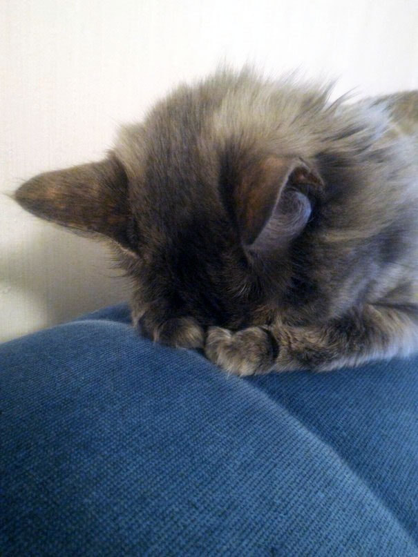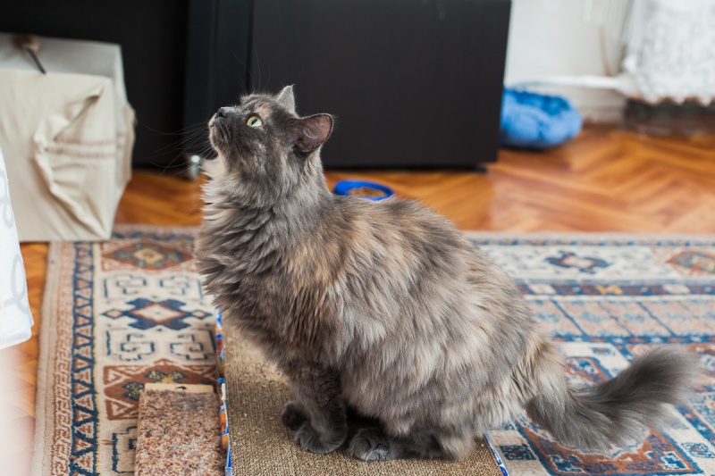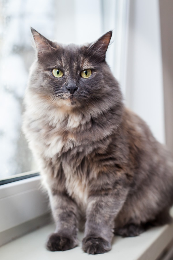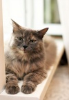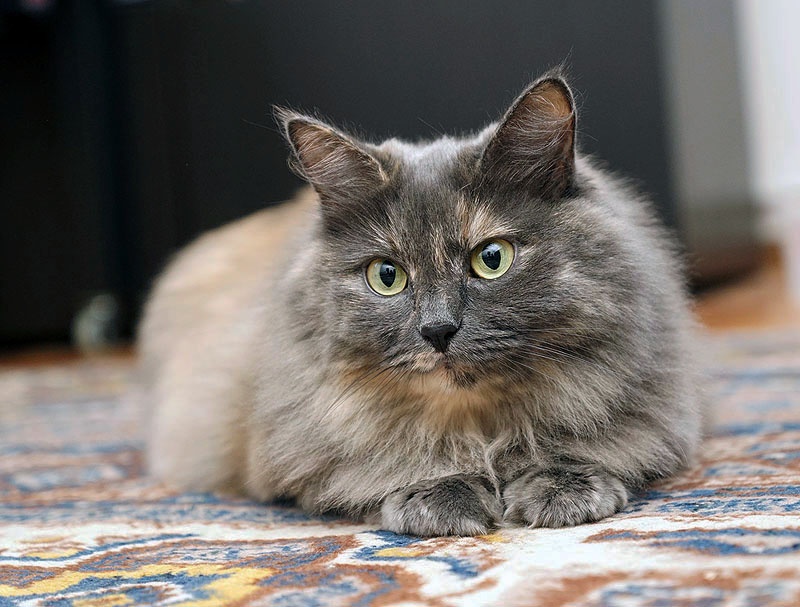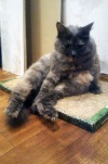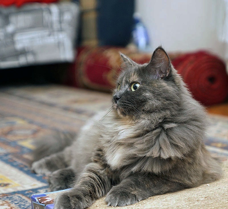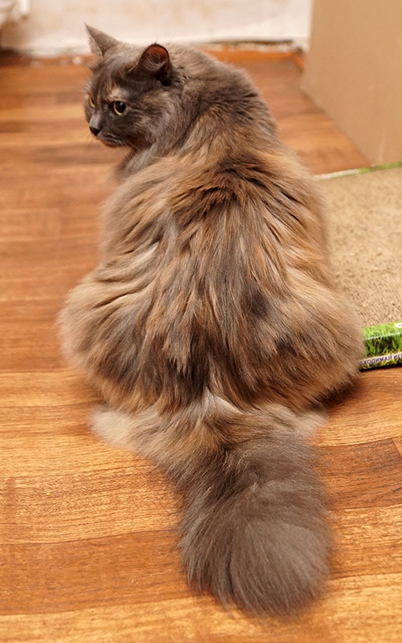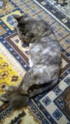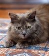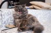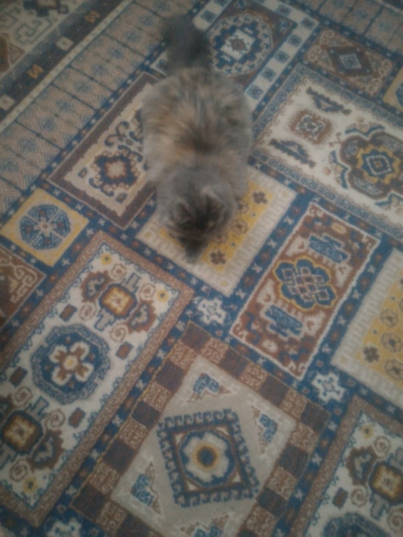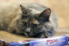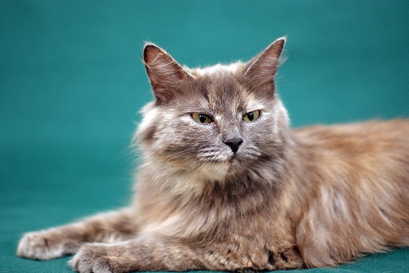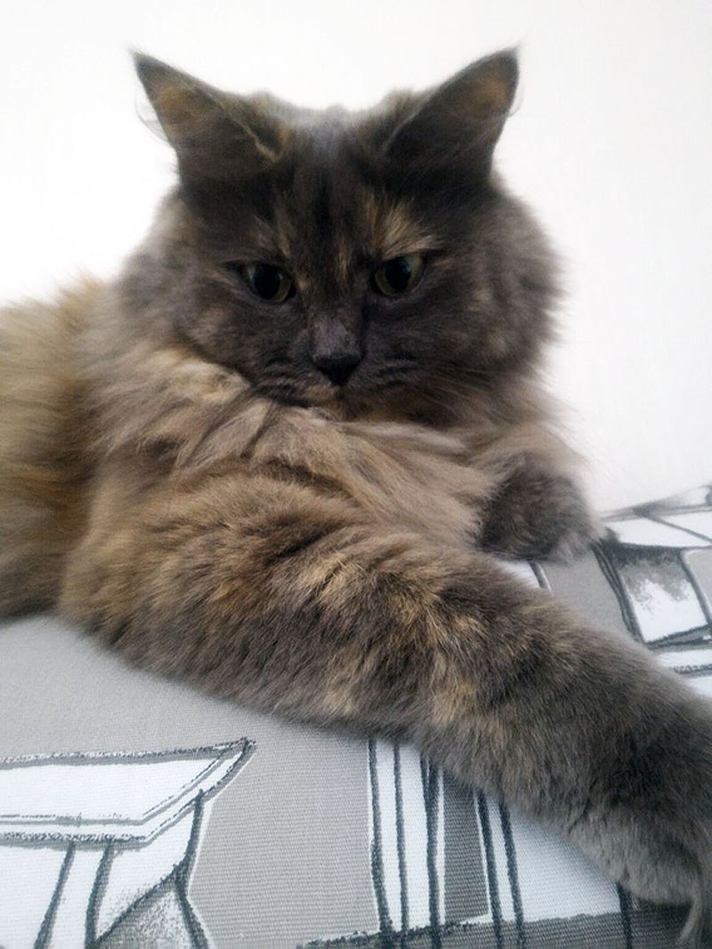 Голубокремовая шубка требует ухода, благо кошка обожает, когда занимаются ее внешностью. Хорошая, очень ласковая девочка.
