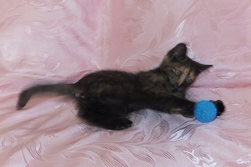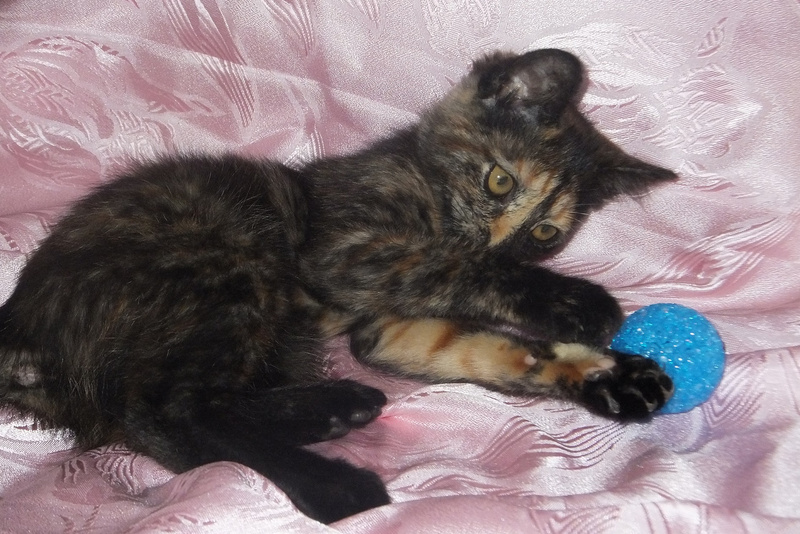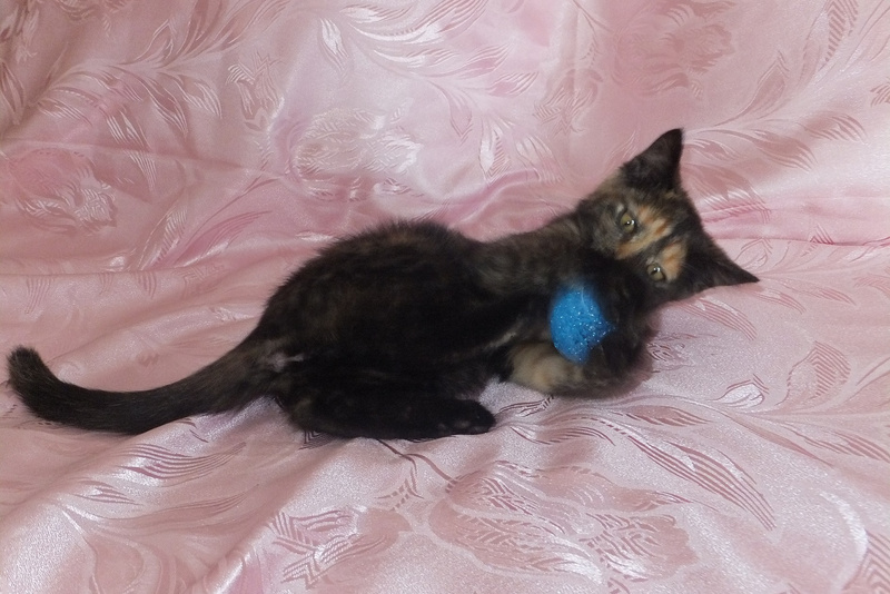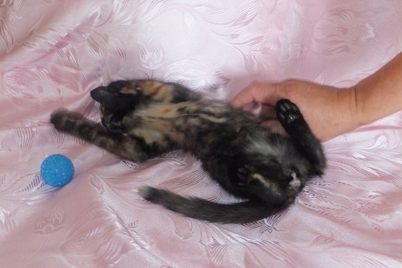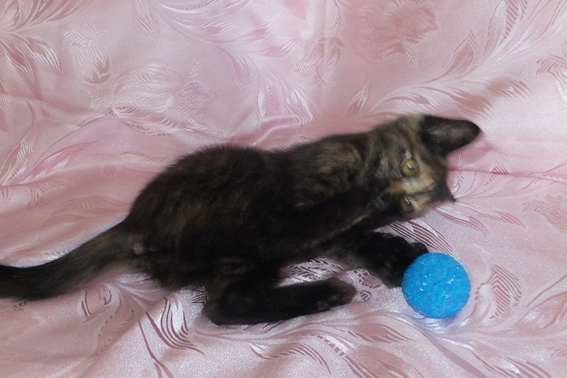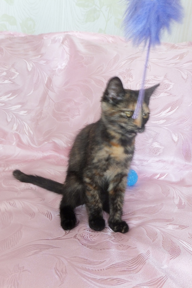 Моте всего около 3-4-х месяцев. Она очень умна, лоток знает на отлично, игрива, ласкова, любит общение с человеком.