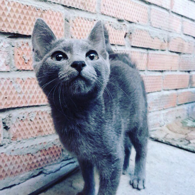 Юному симпатяге примерно 4 месяца. Обладатель изящного телосложения и благородного серебристого окраса (фенотип русской голубой породы), мягкой густой шерстки, ласкового нрава и удивительной понятливости, он был найден на улице с травмами, характерными для падения с небольшой высоты. К счастью, особого врачебного вмешательства не потребовалось (осмотрен Тетериным), однако активный поиск прежних хозяев результата не дал.