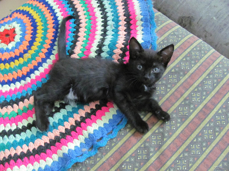 Пристраивается в надежные руки котенок (девочка). Возраст не знаю, подобран (еще голубой оттенок в глазах имеется). Размером с большого крыса, но на длинных ножках. Шилопопость в норме)) С лотком знаком (без наполнителя), но еще надо подучивать (иногда не доходит до него, до лотка то есть).