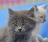Пушистая серая красавица очень спокойная. А ее светленькая сестренка чаще желает привлечь ваше внимание. Они обе нуждаются в любви и заботе.