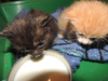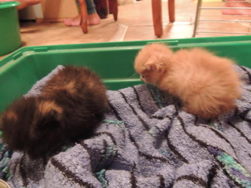 Только что улице найдены 2 маленьких котенка, им не больше месяца, рыжий мальчик и черепаховая девочка. Котята чистенькие и упитанные, видимо выкинули их недавно. Временно приютили их у себя, но дома 2 больших собаки. Помогите найти хозяев. Кушать умеют, очень напуганы, но любопытные. 8914567051 Елена