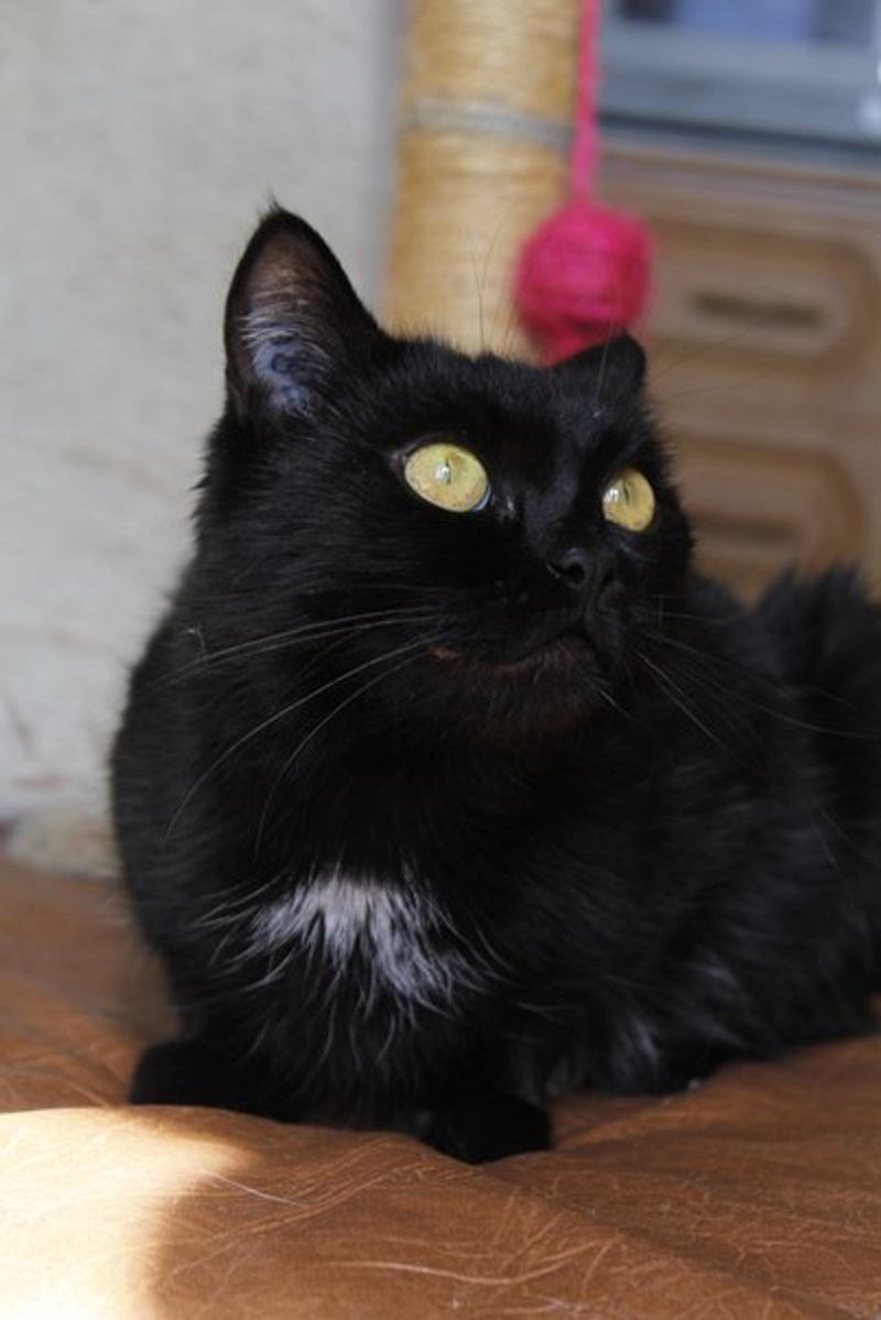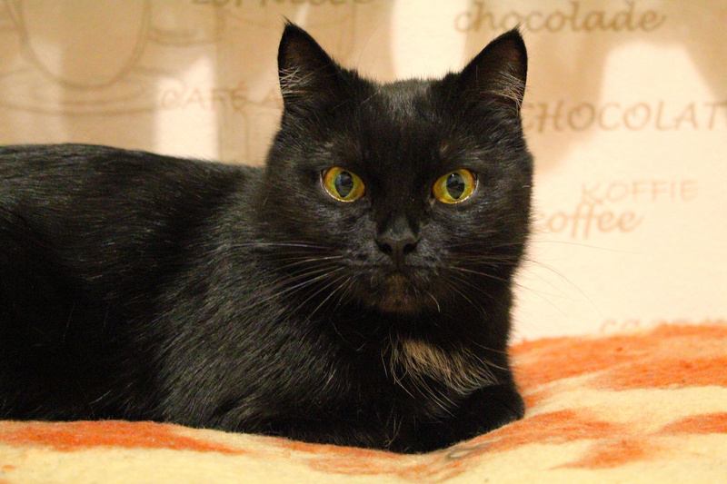 В Британии существует поверье, что черная кошка – это счастье. А чувствовать рядом с собой чью-то спасенную жизнь – это огромное счастье. Девочке Пуме нужен свой настоящий дом! Ей не больше 2-х лет, стерилизована, лоточек на отлично. Эта красивая кошка имеет необычную внешность и тёмно-оранжевые глаза. Ласковая, нежная, очень спокойная, никогда не хулиганит. Может поиграть по настроению, но любимое времяпровождение – спокойно посидеть или полежать в одиночестве или рядом с хозяином, либо – если хозяину так нравится – у него на руках. С себе подобными не конфликтна, но постоять за себя сможет. Предыстория: была найдена беременной на улице, сейчас с ней всё в порядке.