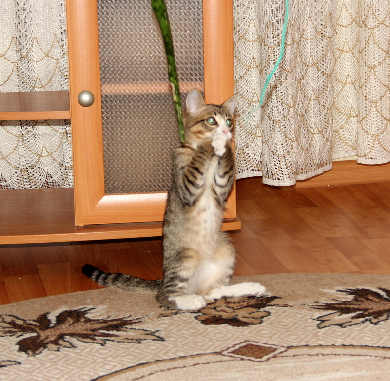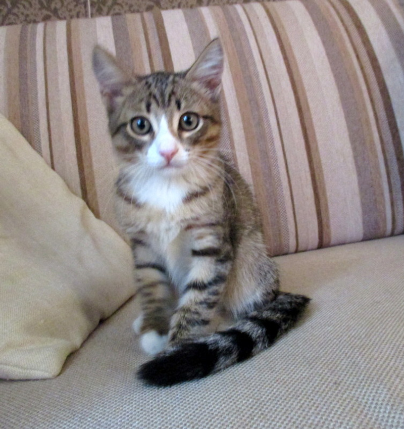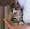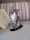 Ему около трёх месяцев. Очень ласковый, трогательный котик. Воспитанный, кушает сухой корм, ходит в лоточек.