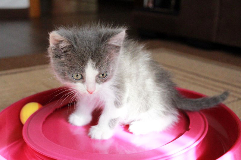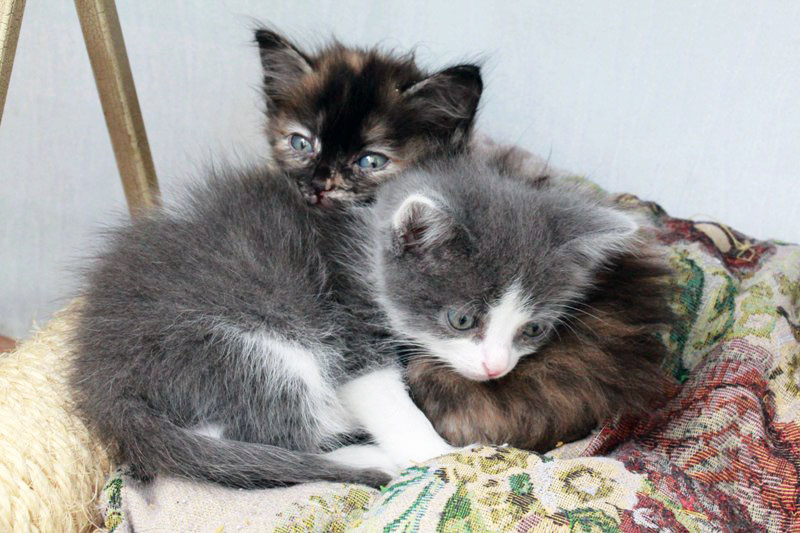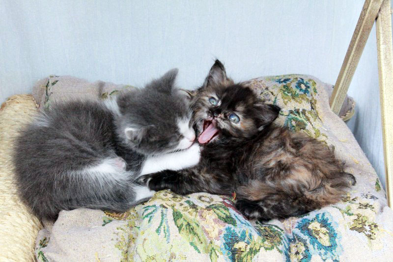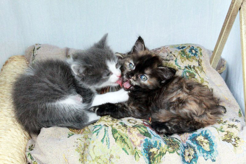 Приучены к лоточку, кушают самостоятельно паштеты РК для котят. Шпунтик любит пить молочко (заменитель кошьчего) из соски, уже тогда перестает капризничать и крепко засыпает.