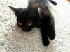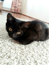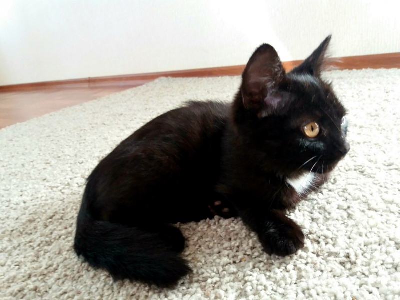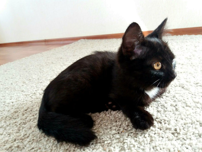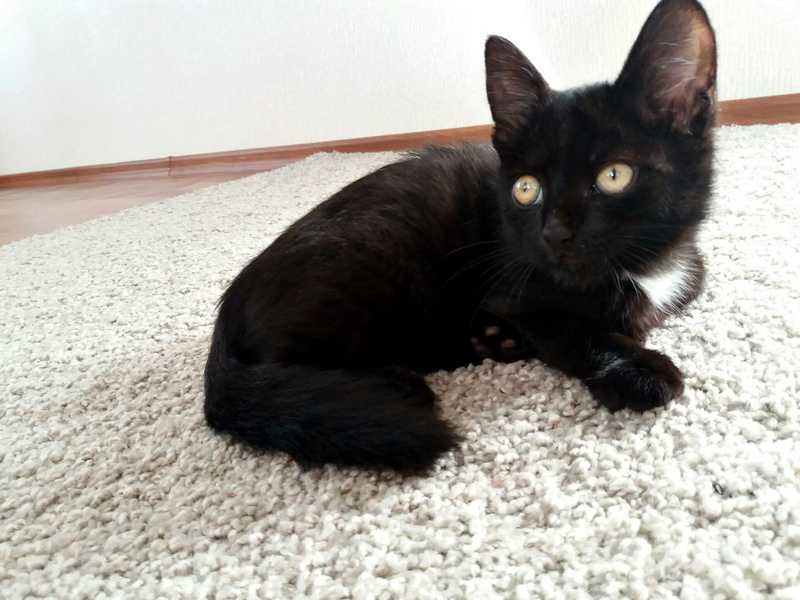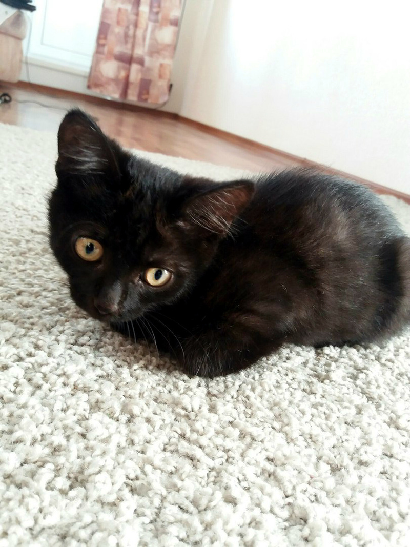 Ему примерно 2-3 месяца - самый забавный и интересный возраст. Мальчишка очень смышленый и быстро всему учится. Умеет очень быстро бегать и очень весело играть. Ласковый, мурчательный, привязчивый парень. Этот котенок очень любит все тщательно изучать. Везде ему нужно сунуть свой любопытный нос. Может залезть на стол и долго исследовать колонки, а потом прятаться между ними. Кроме того, что он умница, этот котенок ещё и красавец. У него восхитительная блестящая черная шёрстка и песочного цвета глаза. Он никогда не откажется от ласки. Посидеть на ручках, помурчать малыш всегда рад.