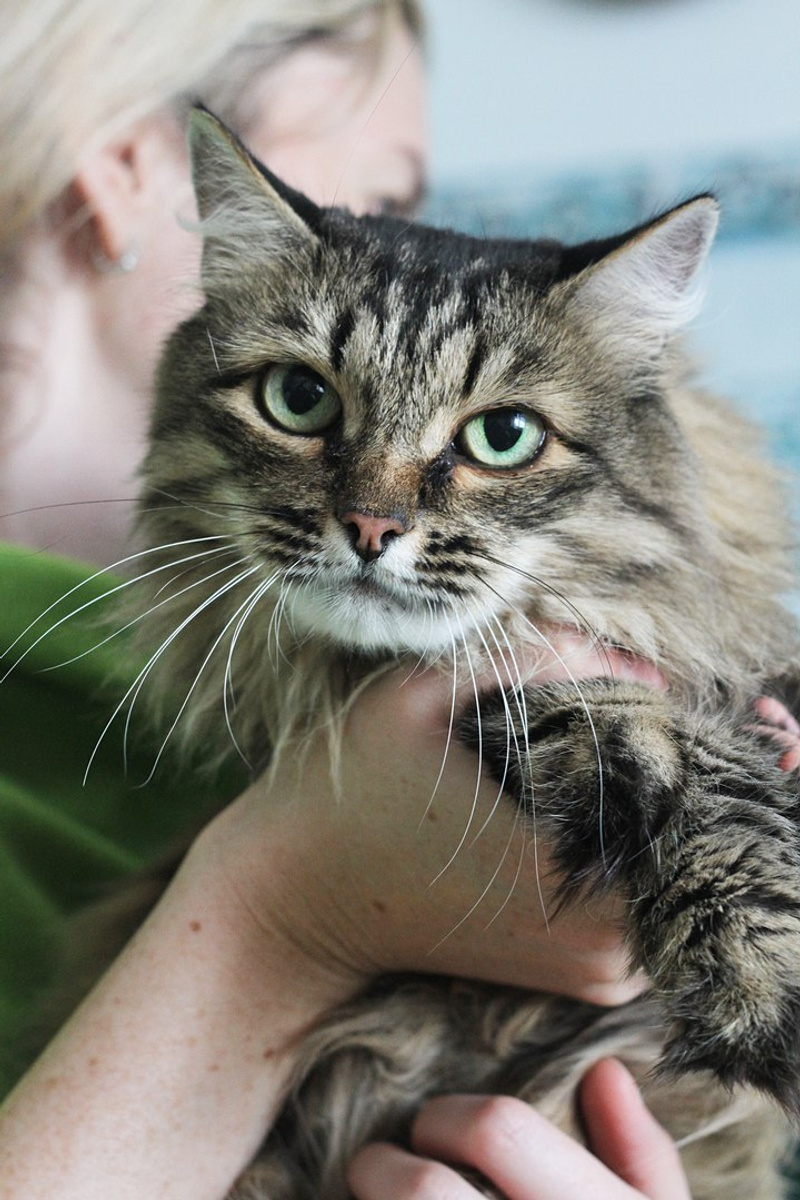 Марыся - пуховая мягкая девочка с глубокими зелеными глазами. Её пушистая шубка с густым подшерстком и длинными шерстинками разного цвета нуждается в регулярном начесывании и наглаживании. Марыся очень уютная, домашняя, разговорчивая дама. Она будет встречать Вас с работы, ходить хвостиком и рассказывать как она без вас скучала. Эта красавица 2-3 лет принесёт уют и спокойствие в ваш дом.