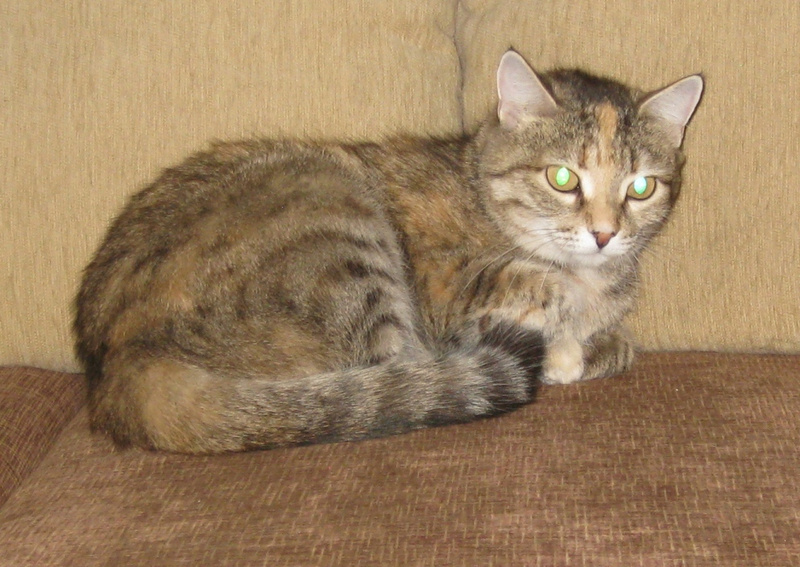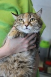 Милана. Самая молоденькая и самая выразительная девочка. Возраст около 1,5 лет. Миланочка названа так неспроста, это очень славная и трогательная кошечка в потрясающей по красоте и мягкости шубке. Основной окрас агути усыпан небольшими рыжими крапинками и пятнышками. Создается впечатление, что кыса только что выбралась из осенней листры, и один оранжевый листик задержался у нее на макушке)) Миланочка немного робка с незнакомым человеком, смотри исподлобья и как будто говорит: "не причиняй мне зла", но это только в первые 10 минут, затем она раскрывается, начинает мурлыкать и осматривать Вас любопытным взором широко открытых добрейших глаз.