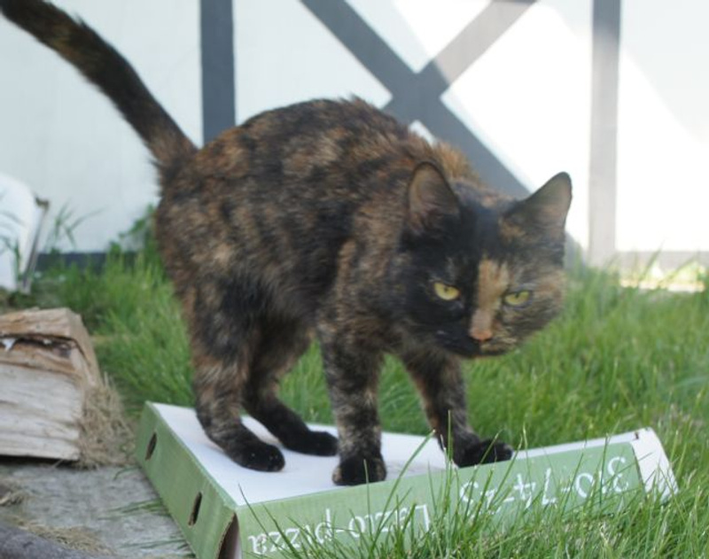 Черепашке наверное год-полтора, общительная, ловит мышей. Прибилась к нашему дому месяца полтора назад.