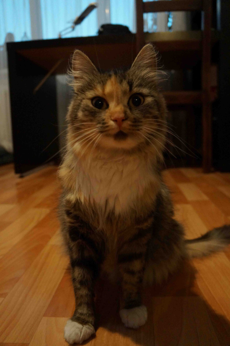 Молодая, пушистая, трехцветная кошечка ищет добрые руки и тёплый дом! Летом жила на даче, но хозяева ее бросили, чтобы она не замерзла, приютили у себя, но оставить не можем. Такая кошка достойна лучшей участи. Характер покладистый, ласковый, кошечка не агрессивна. Она нетребовательна в быту, кушает всё. К лоточку приучена. Обработана от паразитов.
