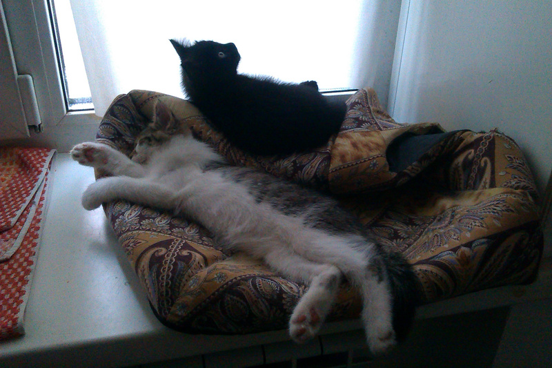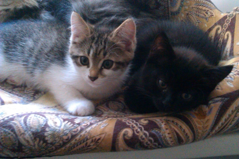 Котята здоровые, дружелюбные, веселые, игручие. Научены всем премудростям - лоток, когтеточка, обнимашки. Других кошек не боятся (они вообще ничего не бояться, кроме пылесоса), собак и маленьких детей видели только из окна. Проглистогонены.