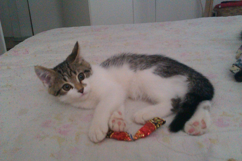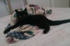 Норка - девочка, короткошерстная, темная, с белыми пятнышками на грудке и пузике, хитрюга и заводила. Первая будит меня утром с предложением позавтракать и поиграть. Укладывается только тогда спать, когда уже совсем заняться нечем и никто на неё внимания не обращает. Ласкуша и вредина - настоящая жемчужина и утонченная красавица.
