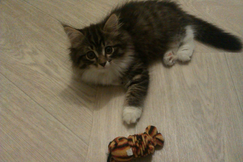 Булька - девочка-пушистик, шелковая шубка, по окрасу похожа на сибирскую кошку (копия мамы), моя подружка, все домашние дела делаются только с ней, постоянно просится на ручки, чтобы потарахтеть, нежнейшая натура.