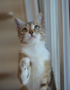 Зайке 1 год, лоток на 5+, ходит в любой наполнитель, с удовольствием кушает сухой корм, она стерилизована и готова к прививке.