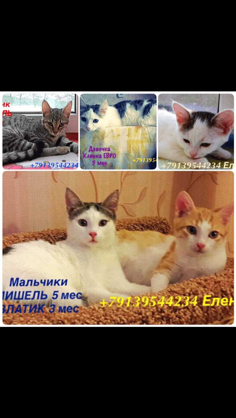 Отдадим в самые добрые руки чудесных котят! Родились на крыше банка и падали оттуда - так и были все пойманы и спасены. Малыши адаптированы к жизни в квартире, приучены к лоточку и кушают все. Проглистогонены. Обработаны от паразитов. Здоровые, веселые и активные малыши. Девочки и мальчики с разными характерами и нравом. Возраст 5 месяцев. Рыженький малыш возраст 3 месяца. Был найден на железнодорожных путях очень голодным и напуганным. Сейчас уверенный в себе смелый и активный котенок с красивой рыженькой шерсткой.