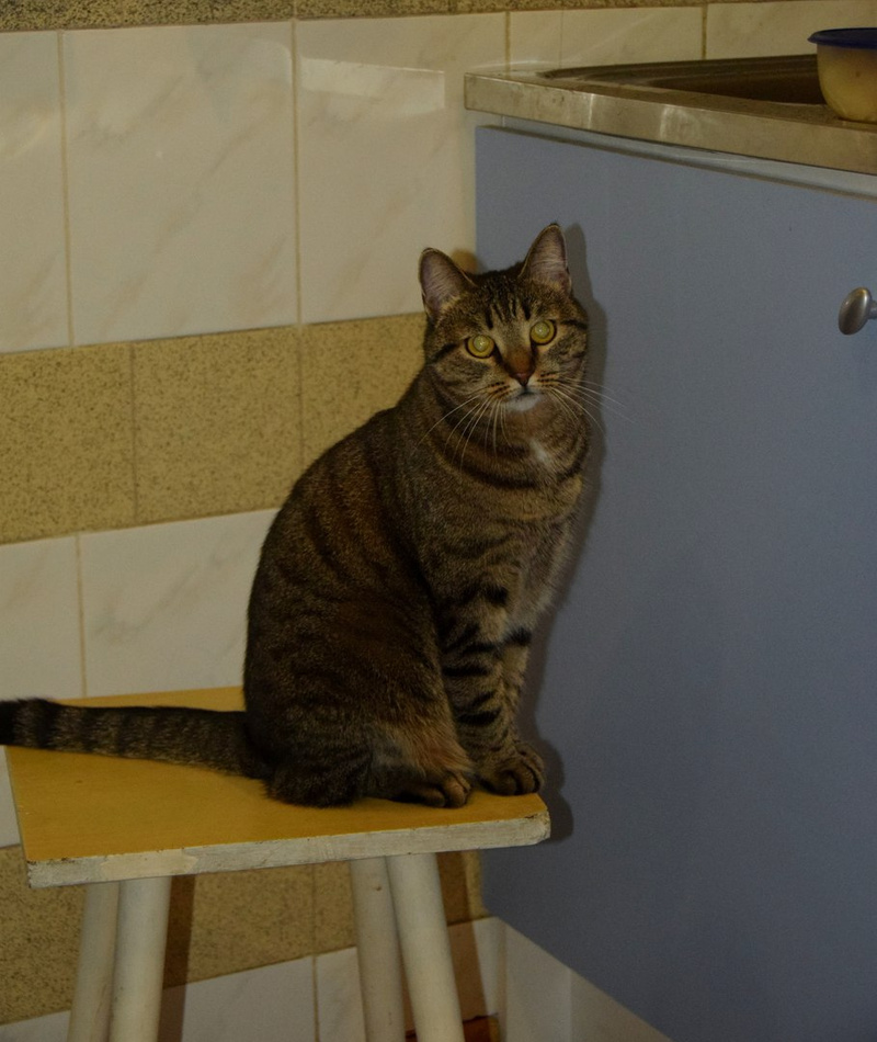 Чузла (Чузель), кошка, возраст - 4,5 года, вес – 4 кг. Окрас серый (табби-макрель), живот – бежевый. Домашняя, стерилизована. Уважает корм Вискас, не откажется от сырого мяса, любимое – курица и индейка, без ума от сыра. Есть аллергия.