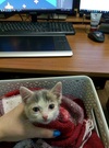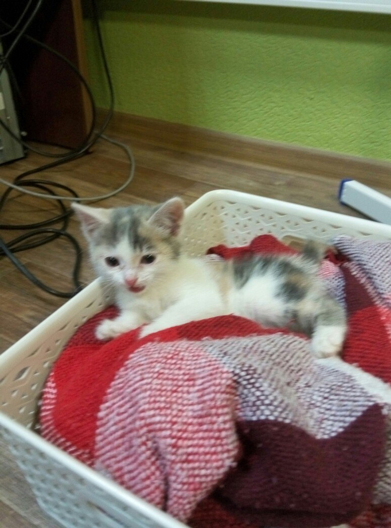 На работу подкинули котенка. До утра он в тепле и безопасности. Что дальше делать и как долго он может там находиться - не знаем. Я не могу забрать, остальные тоже. Ищем ему дом, или хотя бы передержку. Можем помочь с деньгами на ветеринара и корм.