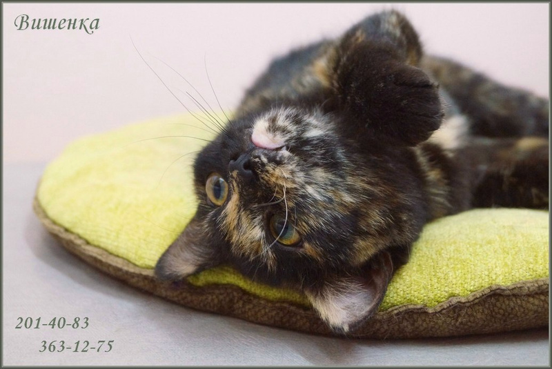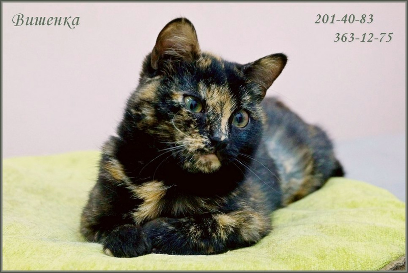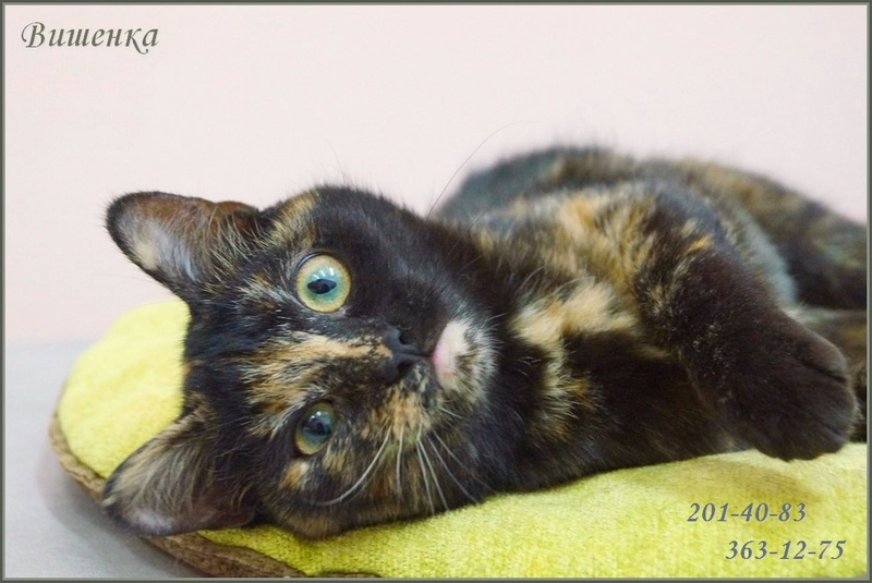 Вишенка стерилизована и привита. кушает сухой корм, приучена к горшочку с наполнителем.По всем вопросам можно звонить по тел. 363-12-75, 201-40-83