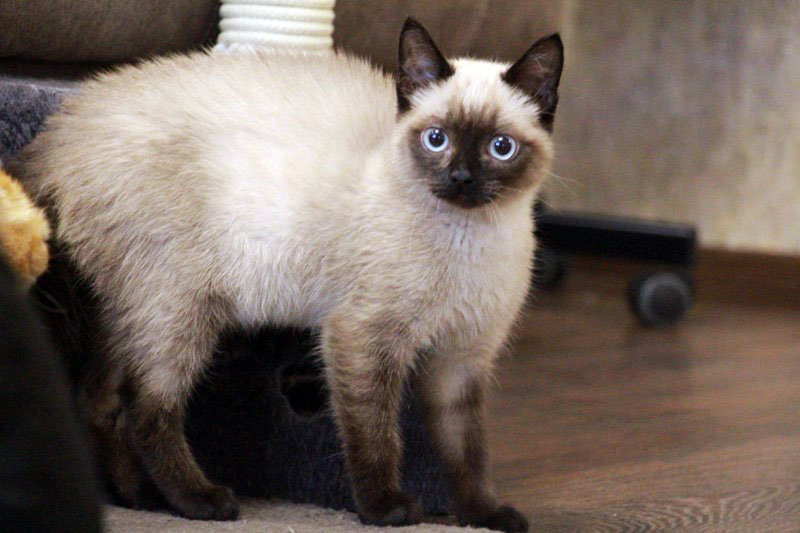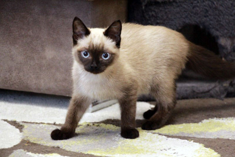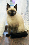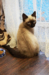 Гав фенотипичный тайский котенок окраса сил-поинт, с классической масочкой. На передержке совсем недавно. Попав в многочисленную компанию, не терял самообладания, не трусил, не прятался, сохранял бесстрашное выражение морды во время "переговоров".