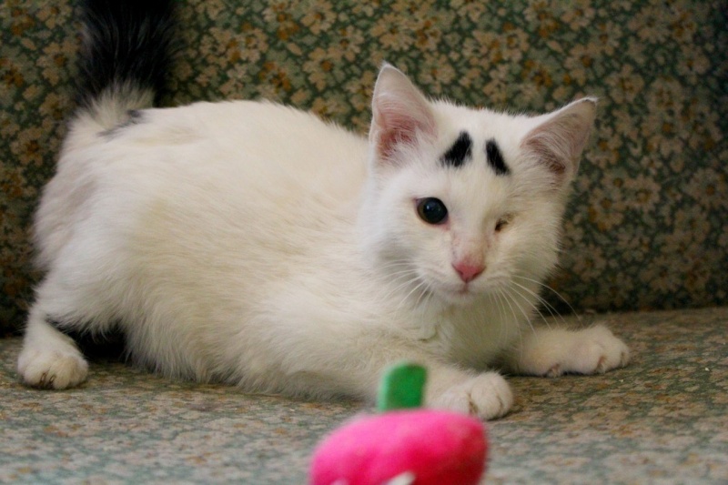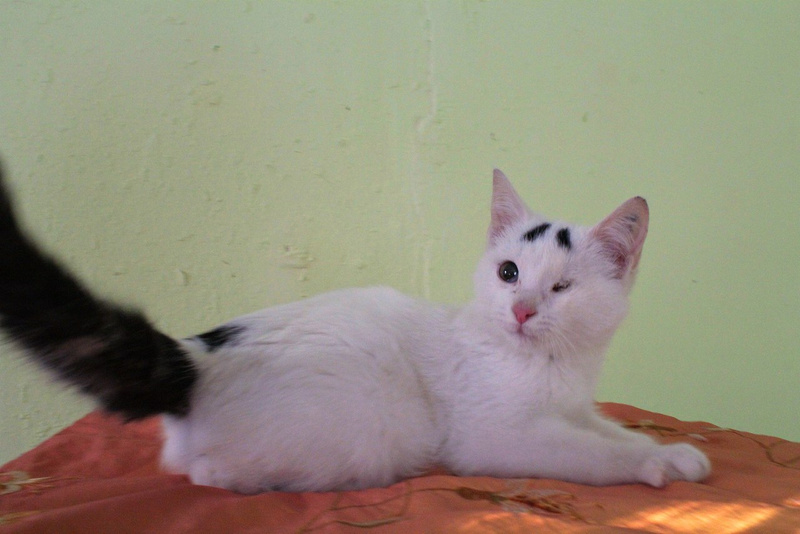 Маленькое мягкое счастье робко стучится к Вам в двери) Любопытным носиком тычась в чуть приоткрывшуюся щёлку, заглядывает в ваше сердце и вскоре поселяется там навсегда! Очаровательный малыш трёх месяцев от роду. Зворов, привит, кастрирован. Обучен всем кошачьим премудростям. Вместе с братьями и сёстрами он был подброшен в подъезд жилого дома в ужасном состоянии. Вследствие перенесённой болезни, к сожалению, один глазик пришлось удалить, и теперь котейка как будто взирает на окружающий мир хитро прищурившись) Обладает потрясающим характером - очень общительный ребенок, очень ласковый, игривый, активный и позитивный. Это маленькая рыбка-прилипала, если ему хочется, чтобы на него обратили внимание - готов залезть Вам на плечо, на голову, ткнуться в ухо или даже дёрнуть за него. С другими кошками дружелюбен, а собак просто обожает - они для него лучшая "игрушка" - готов часами с ними баловаться.