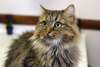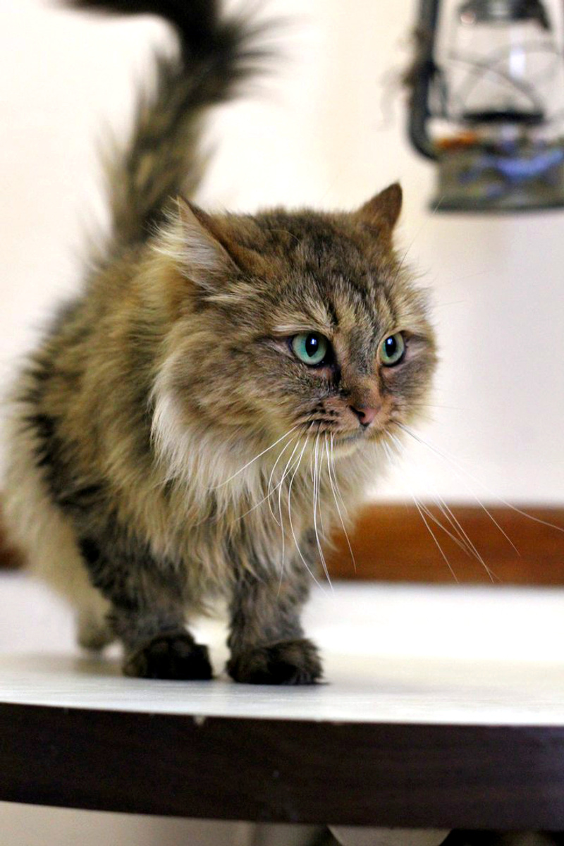 Эта пушистая красавица может похвастаться невероятным многообразием оттенков лощеной шубки. Её зеленые глаза имеют оттенок крыжовника и всегда смотрят с пониманием. Филька - крупная, статная кошка. Она не будет лезть к вам на кровать ночью и навязывать своё общество. При первом знакомстве с домом, она выберет себе уютное место и на ночь будет уходить туда. Это может быть переноска, домик, а если нет ничего похожего, то с комфортом устроится на полу.
