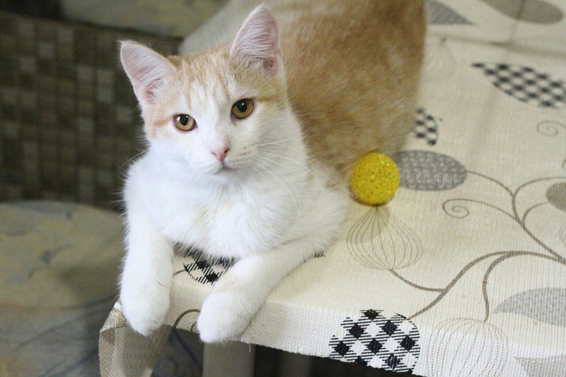 Ласковый котик с янтарными глазами, бело-рыжего окраса, очень смышленый и покладистый - Кокос! Хорошо понимает человеческий язык, очень боится громкого недовольного человеческого голоса, поэтому никогда не пакостит) На нашего рыжебоку достаточно тихонько построжиться.. И вот он уже всё-всё понял, и лапы от запретного убрал))) Короче - нежное , домашнее созданье. Полное доброты, тепла и обаяния. Котя для души и уюта. Горшок и еда на 5. Аппетит отменный, непривередлив)