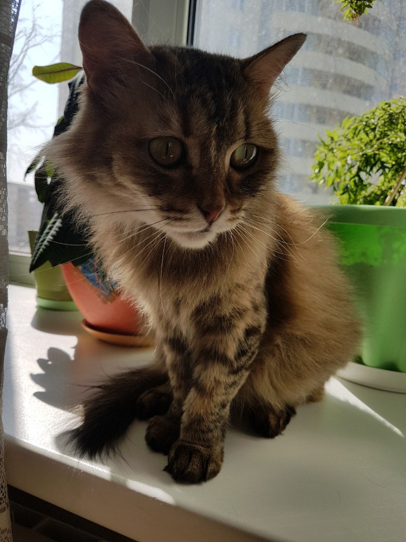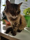 Девочка спокойна, скромна и не навязчива. С братьями по разуму общаться не очень-то хочет, старается их не замечать, другое дело - с людьми. Поговорит, помурчит, выслушает все новости. Она немного робкая, но очень отзывчивая. Такая красивая и ласковая кошечка