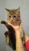 Золотистая девочка окраса агути - самая ручная и кроткая малышка. Очень ласковый, податливый, добрый ребёнок. Благодарна человеку за спасение и старательно мурчит, показывая свою признательность и нежность.