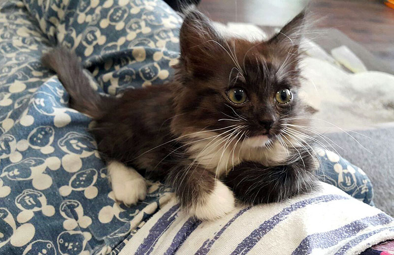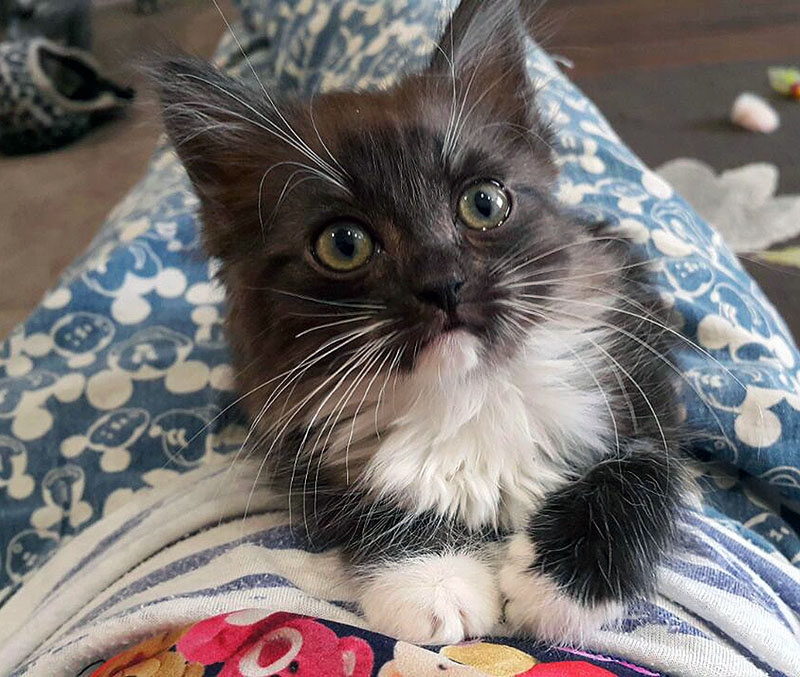Приучена к лоточку с наполнителем, обработана от паразитов. Отдается под стерилизацию по достижении половозрелого возраста ответственным людям, имеющим опыт содержания кошек.