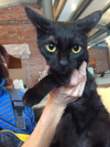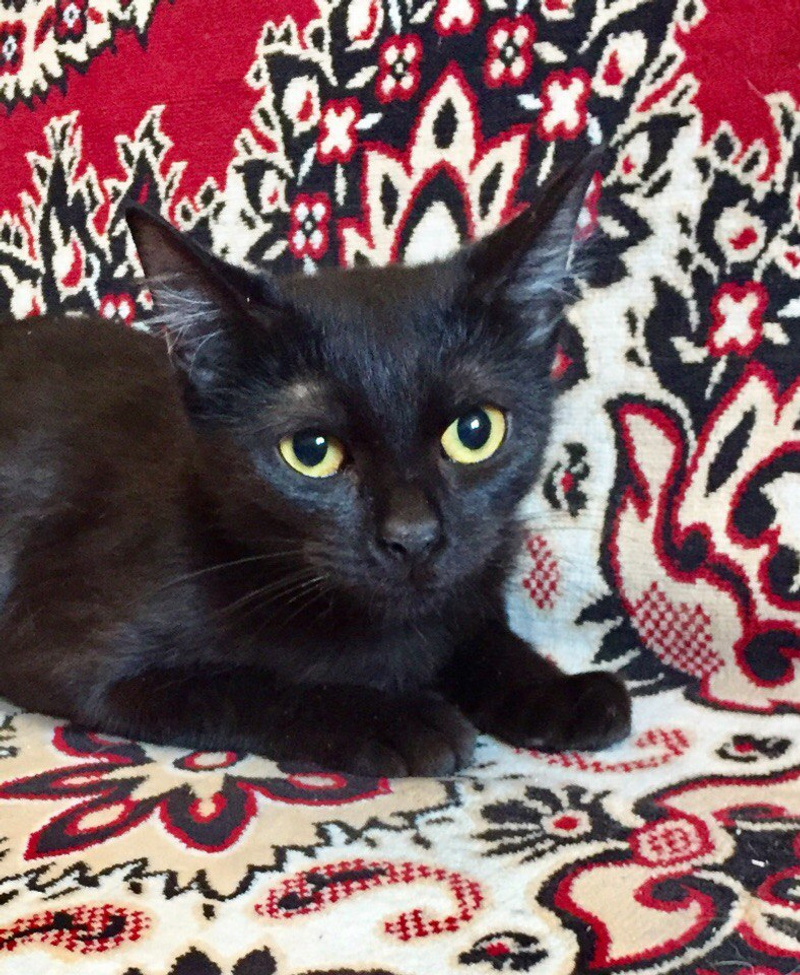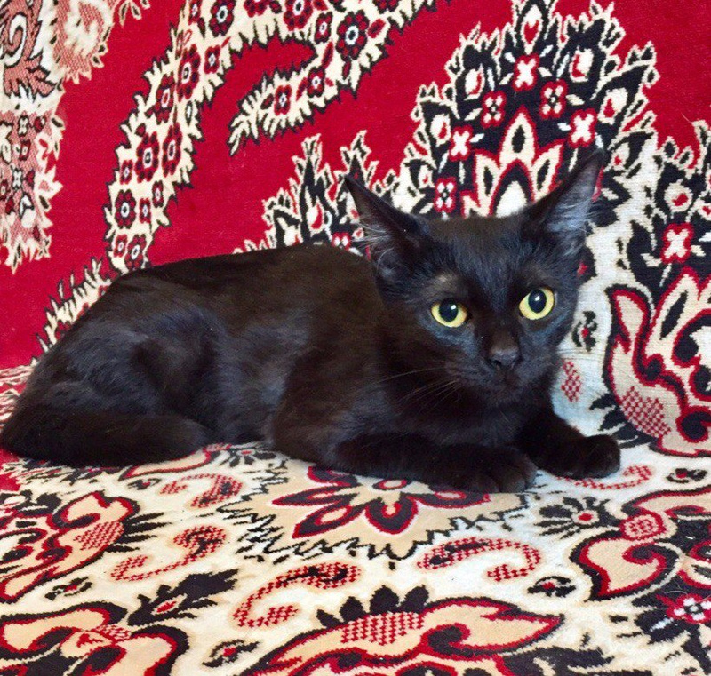 Да-да, Африка ближе, чем Вы думаете! Она ждет Вас в приюте для животных. Свое имя эта юная кошечка получила за черный цвет шубки и в целом необычную внешность (миниатюрная и изящная, как статуэтка, огромные глаза и уши летучей мыши). Афра в силу объективных причин была лишена полноценного внимания человека, поэтому она скромна и не доверчива. Ей нужен терпеливый и ласковый хозяин, который подружится с ней и убедит, что можно ничего не бояться. И когда она расслабится, почувствует себя хозяйкой в Вашем доме – Вы получите очень нежное домашнее существо. Афра не агрессивна при контакте с людьми, не выпускает когти и не кусается. Здорова, стерилизована, ходит в лоток. Возраст примерно 6 месяцев.