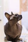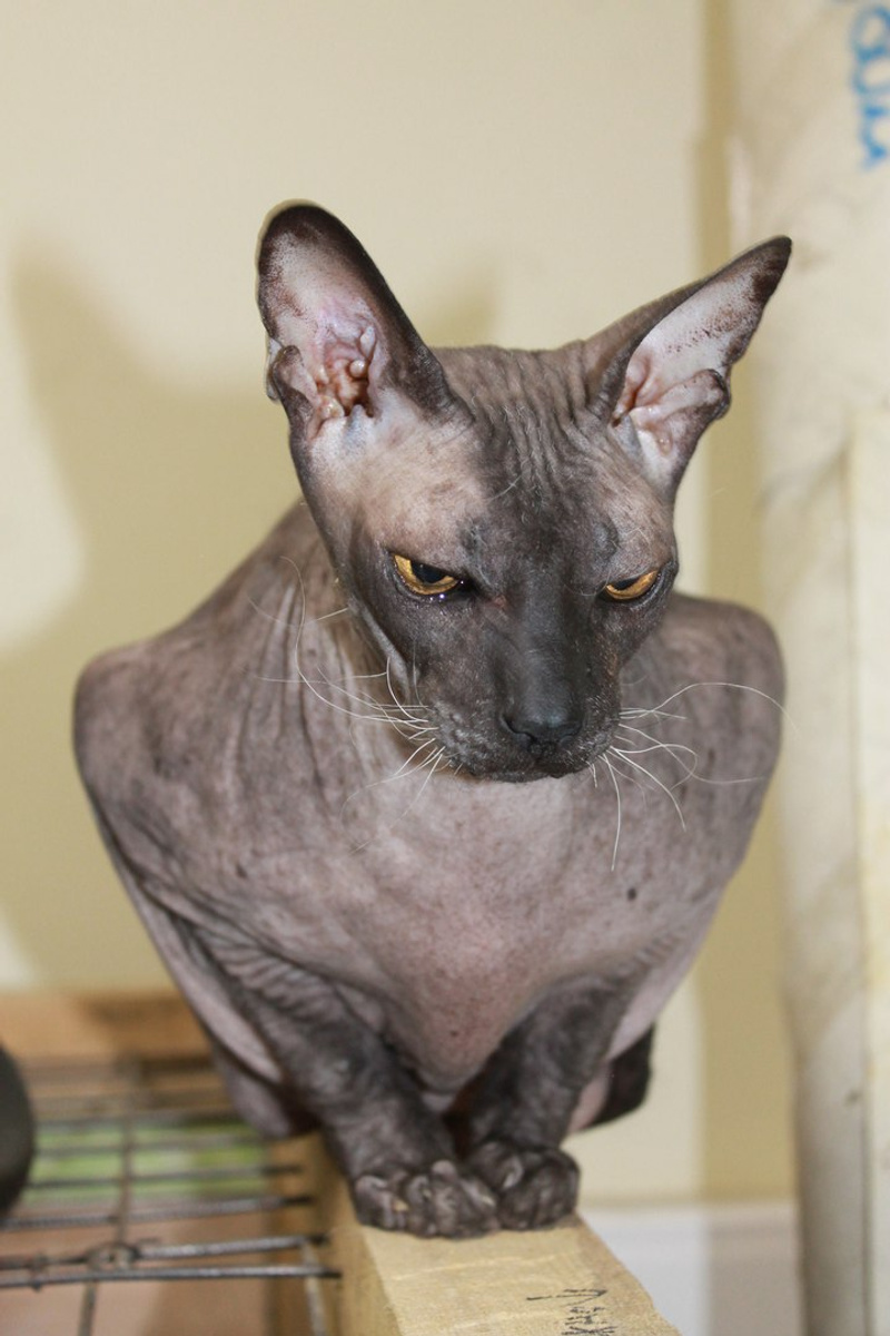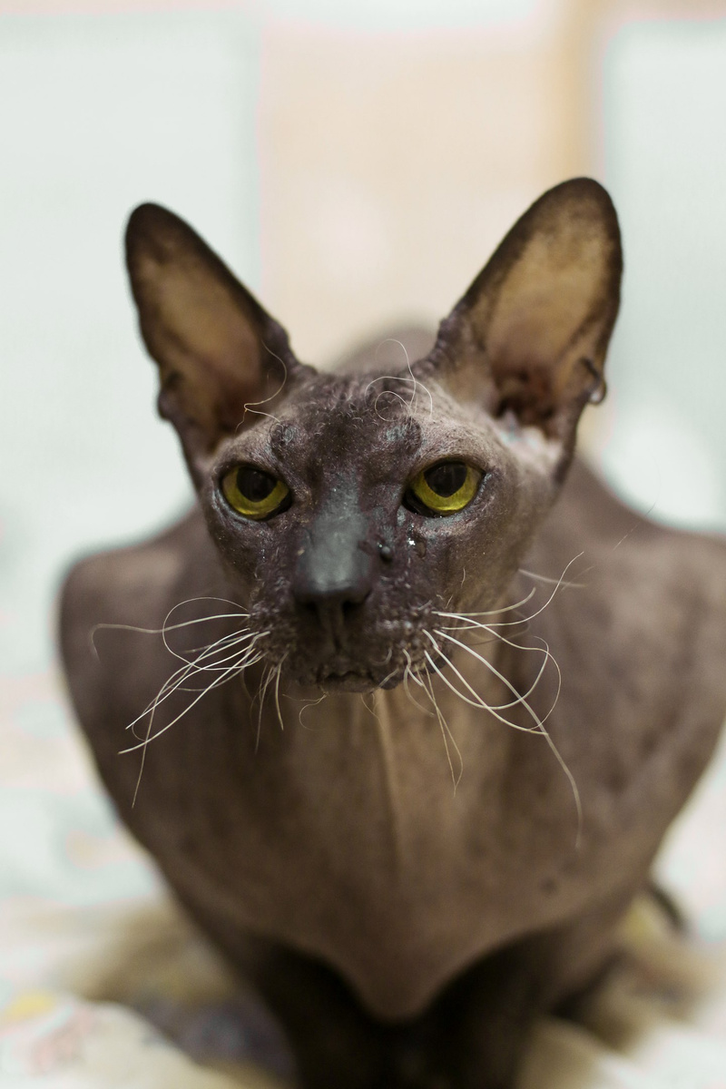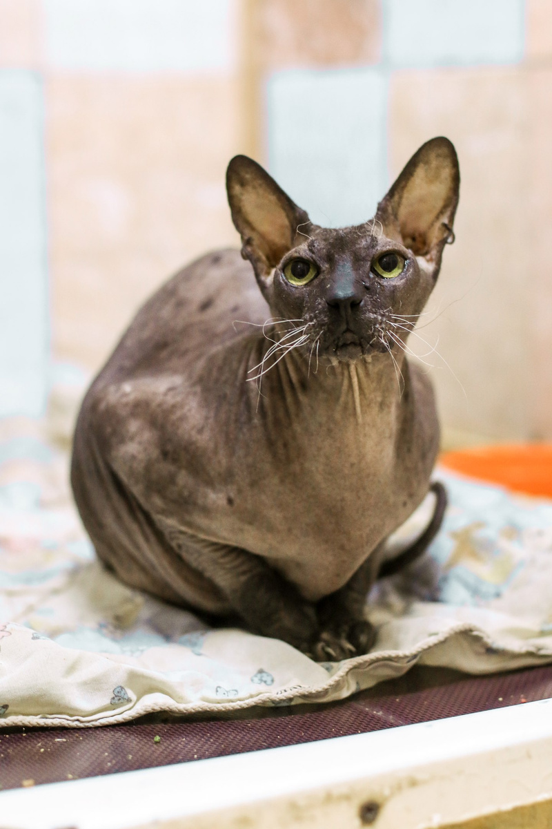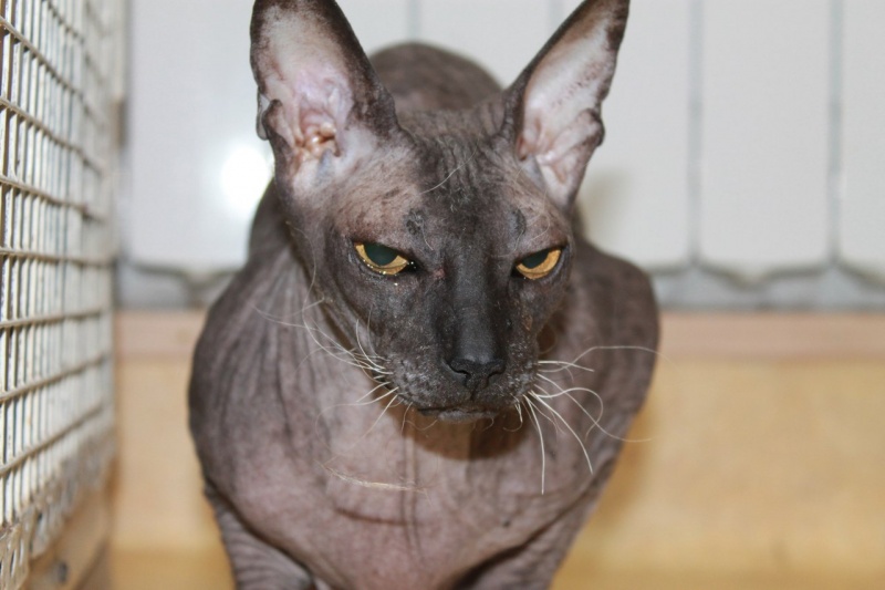 В клинику на усыпление принесли сфинкса, мальчик, возраст 6 лет, кастрирован. Причина такого поступка хозяев - сильная агрессия кота. Сотрудники клиники решили дать шанс на жизнь и попробовать поискать ему новый дом. Котик три месяца живет в клинике, за это время его нрав изучили, и теперь мы знаем, что агрессию он проявляет не ко всем. Будущий хозяин должен попасть в ту счастливую категорию людей, к которым он сам захочет залезть на ручки и дать себя погладить. С остальными же со временем кот придет к нейтралитету. Но сложно точно сказать, сколько займет период привыкания. Новый хозяин должен понимать особенности здоровья сфинксов - кота можно кормить только специализированным кормом, иначе начинается аллергия. Ревностно относится к своей территории и не желает ее ни с кем делить, поэтому отдается в семью без животных и детей.