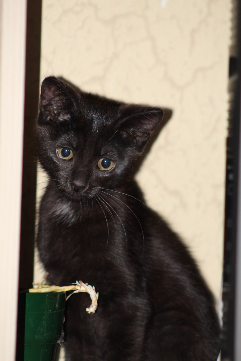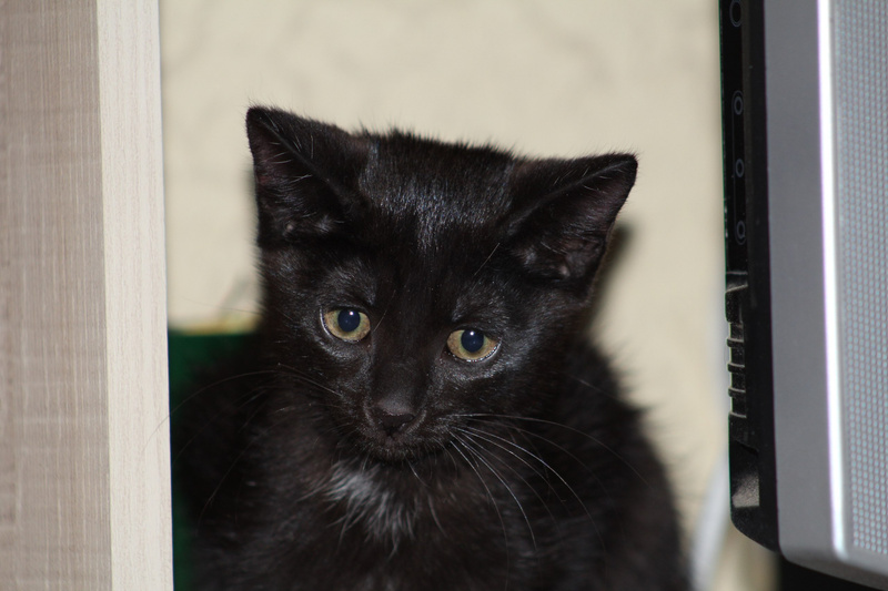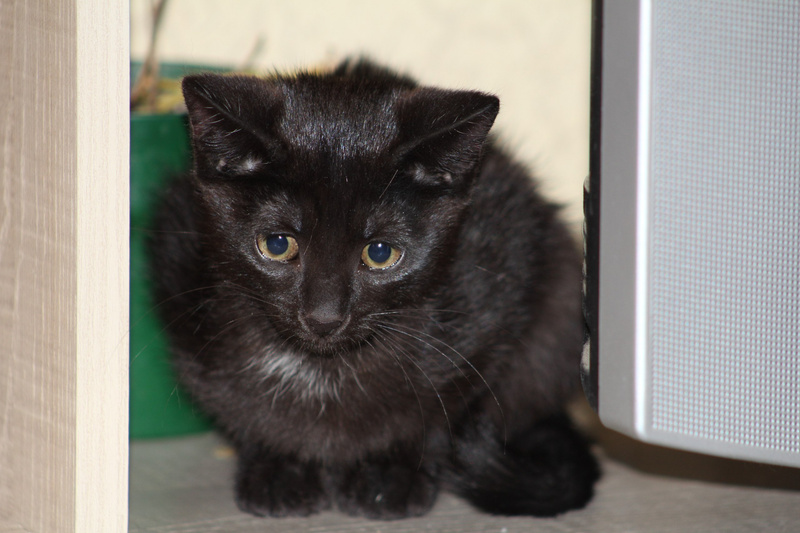 Пристраивается с квартирной передержки вот такая маленькая красавица! Блестящая, гладенькая брюнеточка с белым пятнышком на груди, 3-х месяцев от роду. Безумно обаятельный и непосредственный ребенок, игривый и потешный. На фото Тося только приехала во временный дом из подъезда, куда ее подбросили плодильщики, поэтому она кажется грустной. Сейчас девочка оттаяла и заметно повеселела. Прекрасно ладит со всеми – с людьми, кошками и собаками. Очень ласковая, любит сидеть на ручках и петь песенки. Здоровенькая, чистенькая, проглистогонена, готовится к первой прививке. Ходит в лоточек с селикагелевым наполнителем. Кушает сухой и влажный кошачий корм.