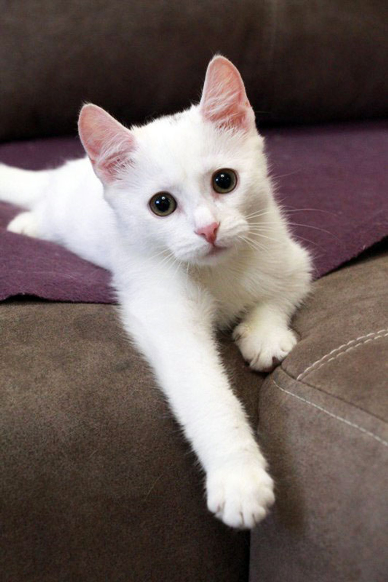 Ищет свое местечко в Вашем сердце белый кошачий ангелок по кличке Сахарок. Возраст 4 мес, он совсем еще ребенок, трепетный, нежный и ласковый. Очень любит сидеть на ручках, отвечает на поглаживания взаимностью -поет свою кошачью песенку. Не откажется погонять игрушки со своим закадычным другом и заводилой Даней, а с ним точно не соскучишься!