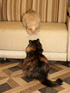 Маша невероятно ласковая, если на неё не обращаешь внимание, она очень тактично подходит и трогает тебя лапкой: погладьте, пожалуйста, будьте так любезны.