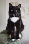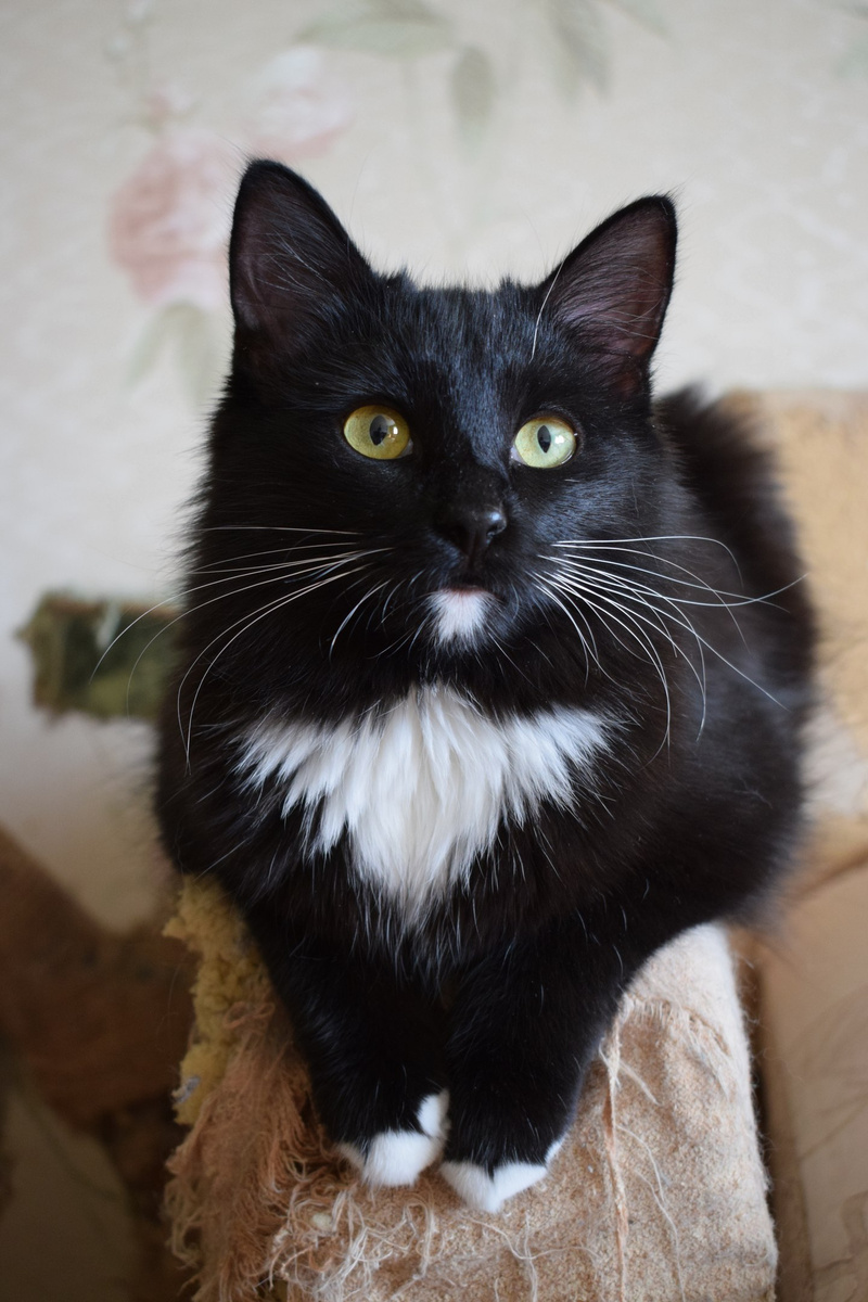 Нэнси является одной из красивейших кошек окраса «Маркиза чёрная». У неё имеются белые «перчатки» и «тапочки» на лапках, на груди белый медальон и пикантное беленькое пятнышко на подбородке. Девчушка любвеобильная, ласковая со всеми, обожает встречать гостей у порога, здороваясь, протягивает сразу обе лапки. Умеет дружить с другими кошками, по характеру совершенно не конфликтная. Ещё она очень любит поспать и покушать, и, похоже, будет большой пушистой котей, когда вырастет. Сейчас ей примерно 10 месяцев, стерилизована, приучена к лотку с наполнителем, питается качественным сухим кормом.