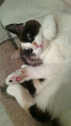 Гордая и самостоятельная, спокойная и нежная, смелая и игривая – это все она, наша Фума. Очень трогательная большеглазая девочка в затейливой маскарадной маске и нежной шелковой шубке. Фумочка очень умная и независимая кошечка, на все имеет собственное мнение и всегда в поисках новых открытий и впечатлений. Любит немного побегать и погонять мячик, а затем сладко спит, свернувшись клубочком. Фумочка тянется к человеку и ждет ласки в ответ. Но и излишне тискать себя не позволит, поэтому для почесушек будет приходить сама, когда сочтет нужным.