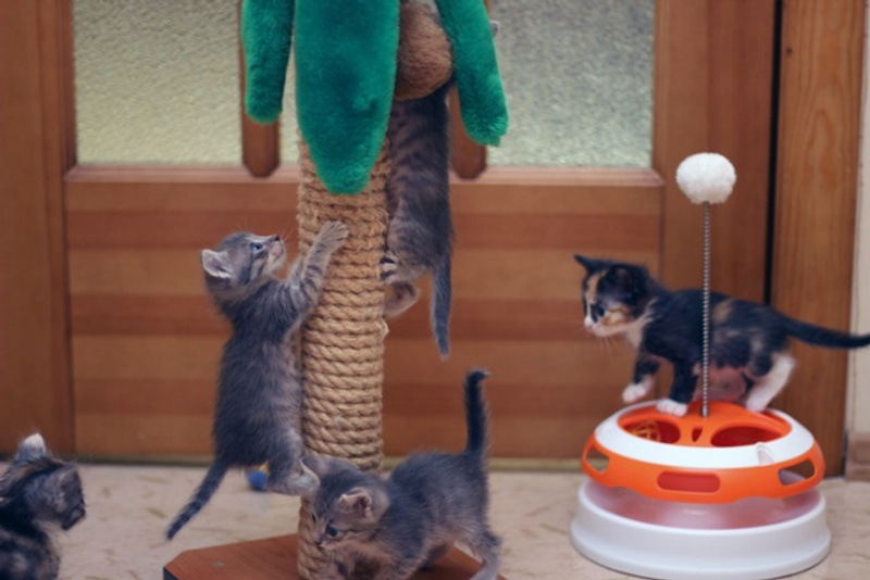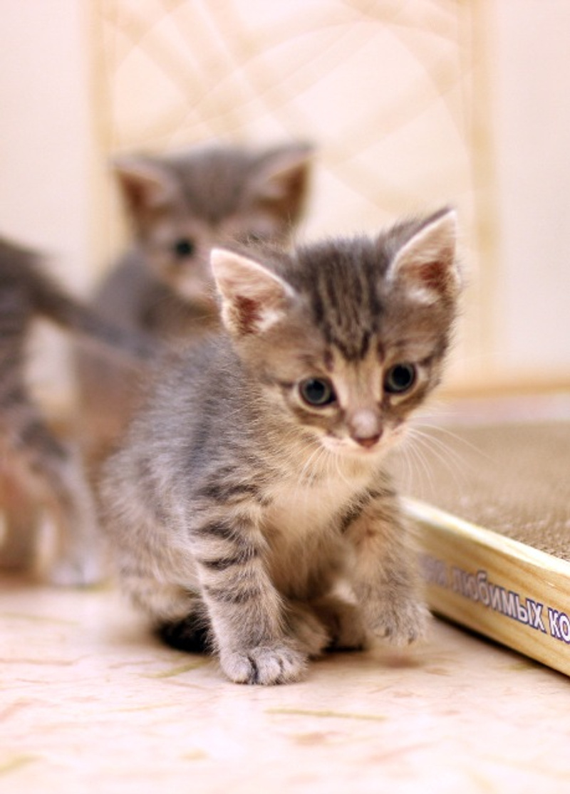 Малышам около месяца.Умеют сами кушать, точить коготки о когтеточку, освоили лоточек на "5+". Умнички!!!
