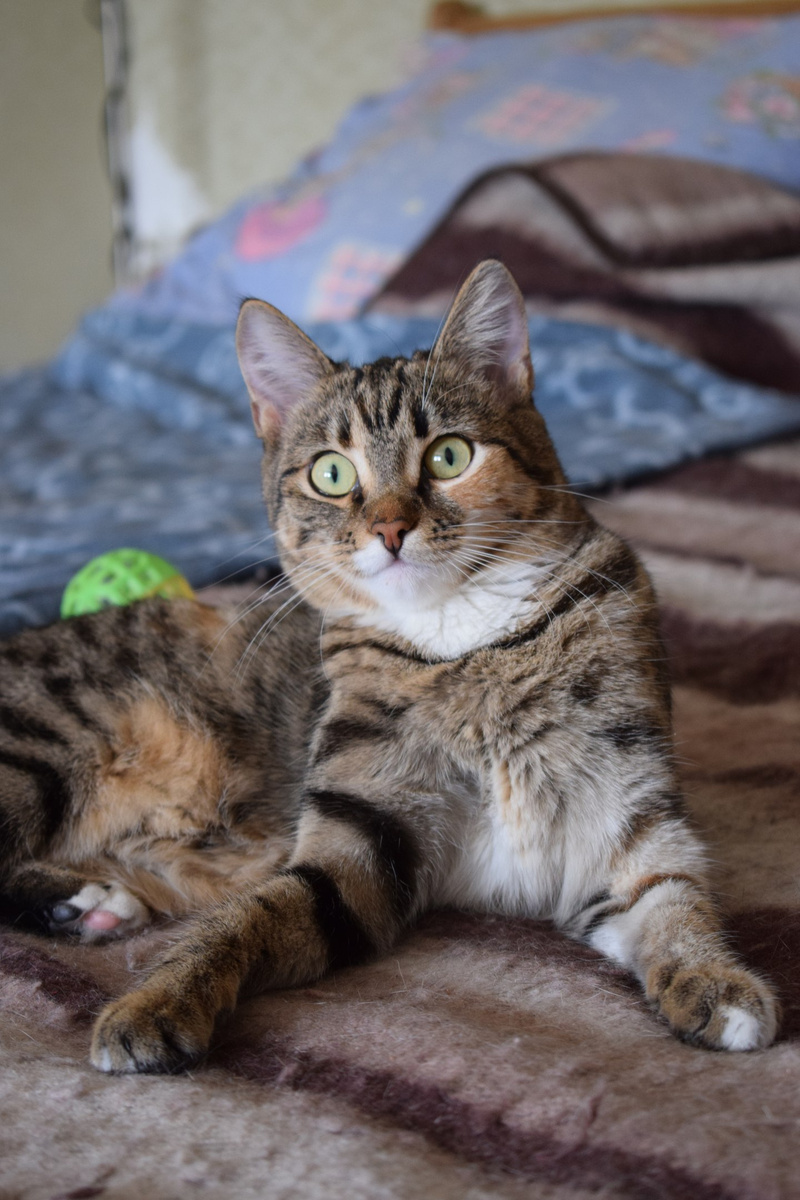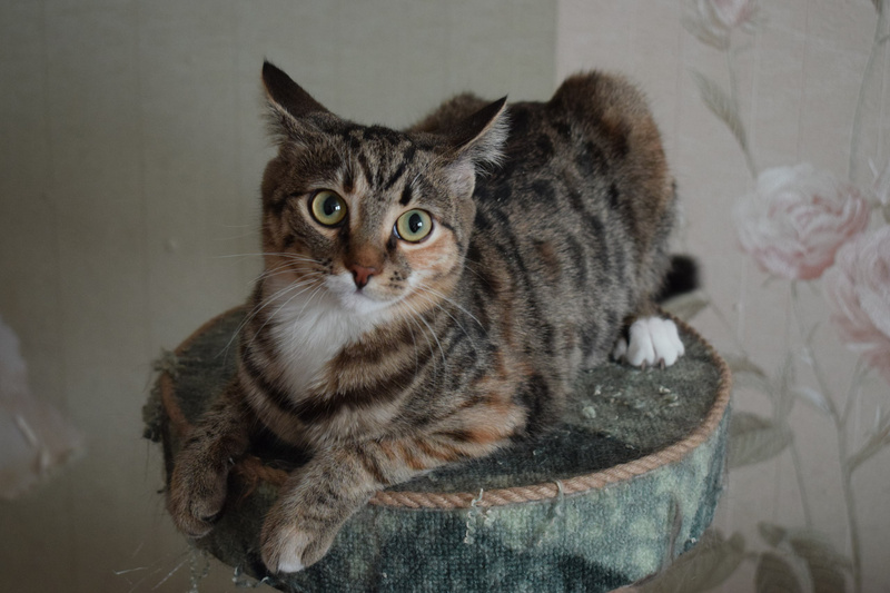 Всё пригодится Асе в игре, всегда придумает что-то такое-этакое, и вот уже "предводительствует" над другими котятами-подростками, все за ней, все включаются в игру. Она очень дружелюбная, почти со всеми кошками найдёт общий язык, а тех, кто дружить не хочет - просто обойдёт стороной. Она всегда занята, прибежит, приласкается, и дальше бежит прыгать и играть. Ася стерилизована, привита, ходит в лоток с наполнителем, питается качественным сухим кормом. Сетки на окнах обязательны, так как очень активная, интересуется окнами, лазает по сеткам и пытается ловить мух.